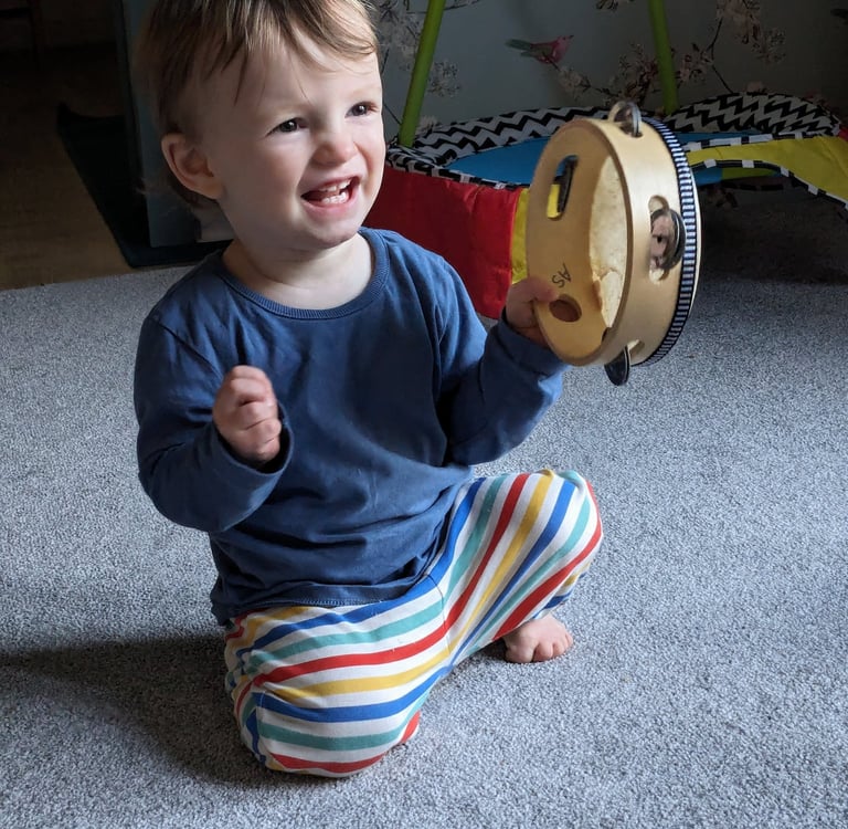 Our baby class is designed for little ones not yet walking, and encourages babies to express themselves through sound, play instruments, interact with their grown-ups, and experience the magic of live music. Classes include sensory play and a time of socialising for those young and not-so-young!